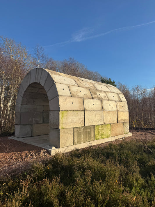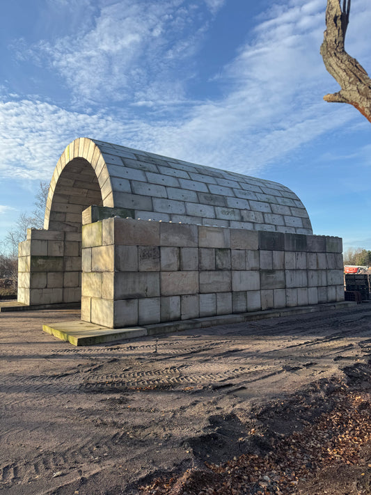 Våra valv byggs av 80 cm tjocka betongblock som monteras likt lego.